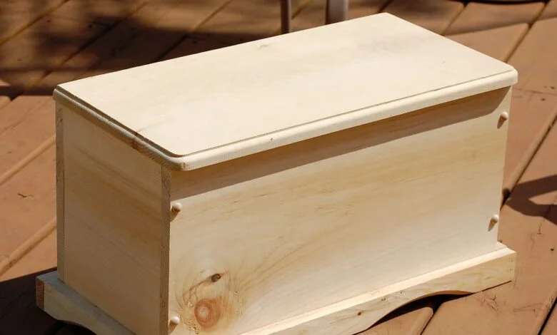 Una caja de madera sobre una cama | Fuente: Midjourney