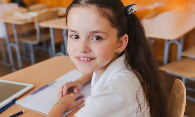 Una feliz colegiala en clase | Fuente: Pexels