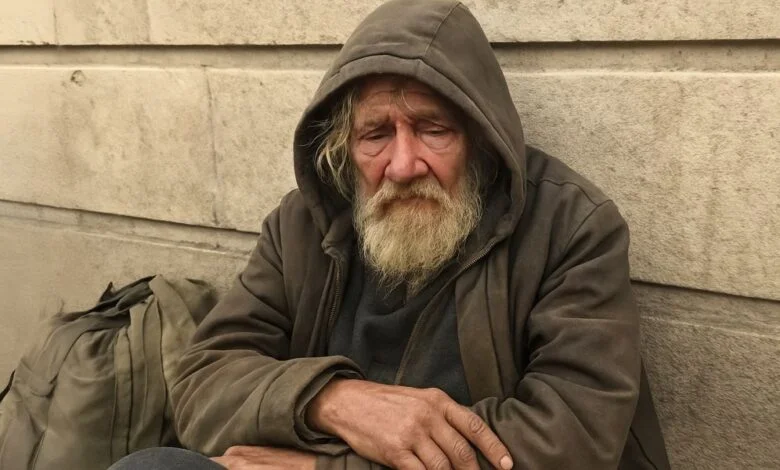 Una de esas tardes, vimos a un hombre sentado en la acera. Llevaba la ropa sucia y tenía el rostro demacrado. Solo sostenía un vaso de papel vacío en las manos. Eidan se detuvo al notar su mirada.